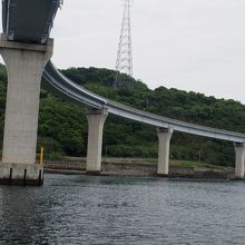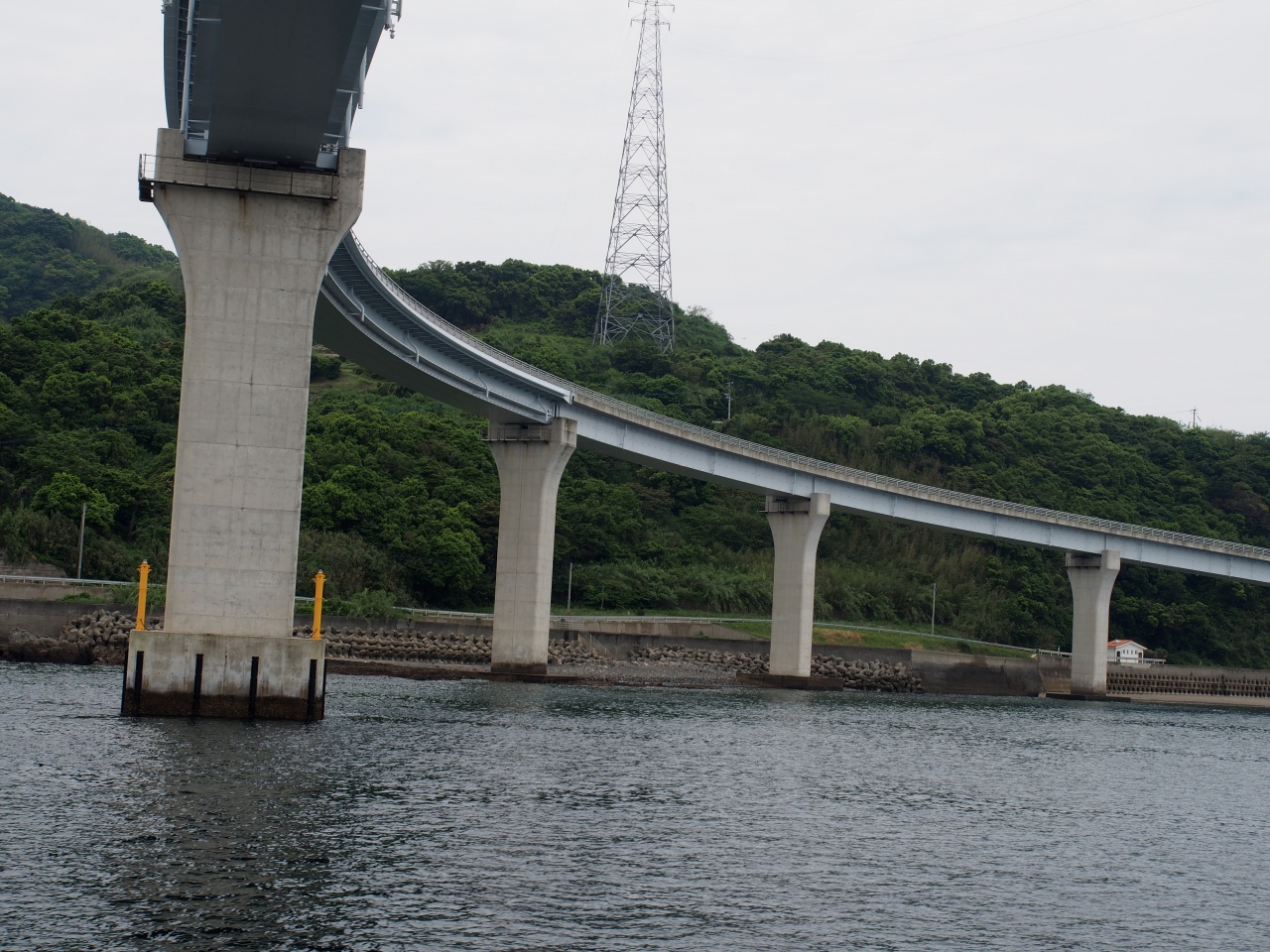 軍艦島クルーズの途中に伊王島に立ち寄り、その途中で真下をくぐりぬけました。大きな橋で、そのカーブした形が特徴的で面白いです。橋上からの眺望がよさそうなので、次回訪問する機会があったらドライブしてみたいです。