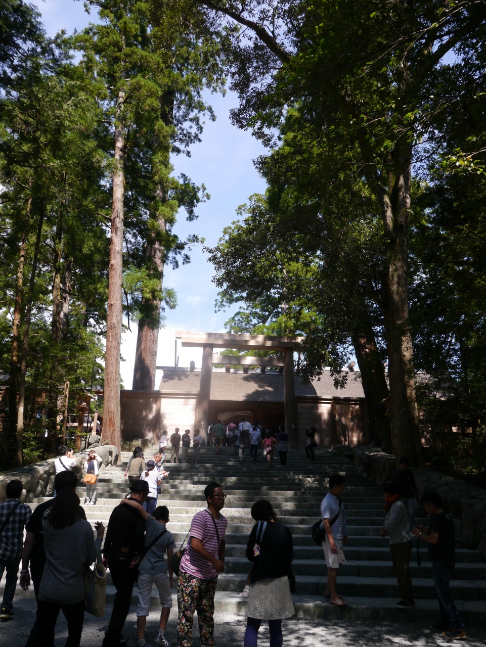 式年遷宮が終わってしばらく経ち、少しは人も少なくなっただろうと伊勢神宮へ行きました。参拝の仕方としてまずは外宮に行ってから内宮へというのが慣わしのようなのでそのとおりにし、外宮に参拝してから訪れました。まず、その敷地の広さに驚きました。手水舎もありましたが五十鈴川で手を清めるのがここの作法だそうです。遷宮後のため、鳥居も建物も木が新しい印象でした。華美さはなく、むしろ質素な雰囲気ですが風格を感じました。敷地内は案外アップダウンもあり、杖をついた方や車椅子の方は大変そうだな、と思いました。