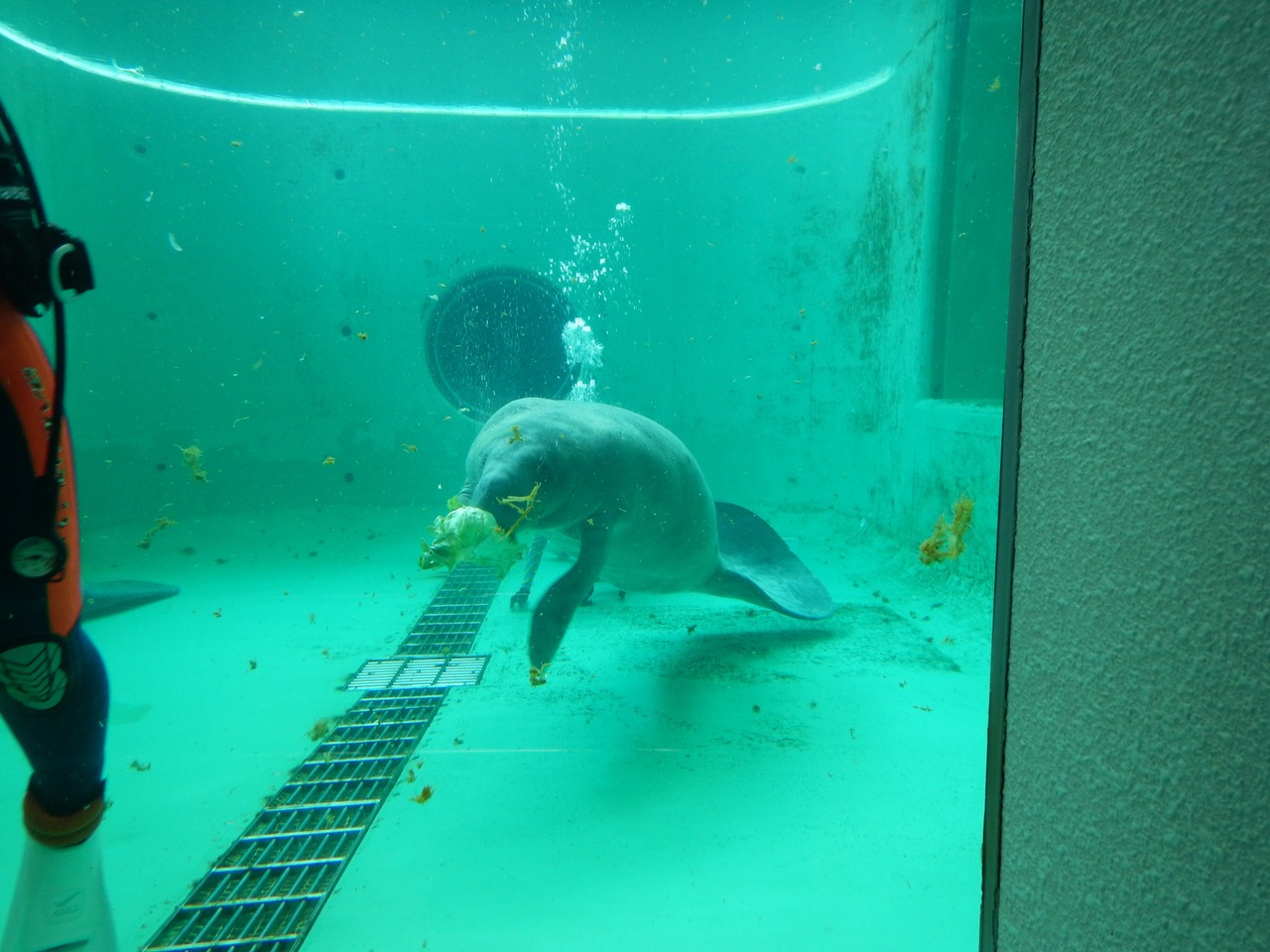 ウミガメ館のとなりにあります。マナティの好物がレタスという事を知ってびっくりしました。あとで、お土産屋さんでマナティのぬいぐるみを見たら、ちゃんとレタスを持っているのを見て納得しました。マナティの人魚伝説の説明のパネルもあり面白かったです。