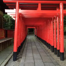 「犬山城近道」という看板につられて赤い大鳥居を潜り、石段を登っていくとそこは三光稲荷神社だった。稲荷神社ということで商売繁盛と金運アップの御利益がある。境内には狛犬ならぬ狛狐と赤い鳥居の続く参道がある。犬山城までの道すがら楽しみながらお参りできた。