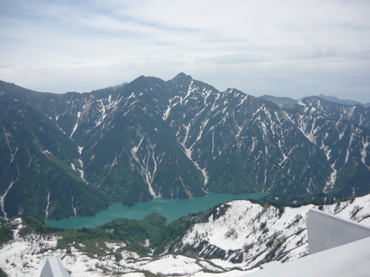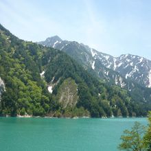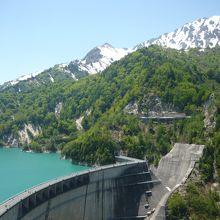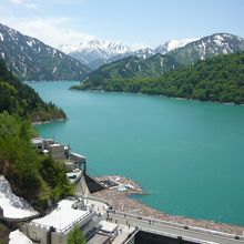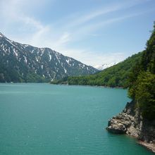 5月の末に、立山の“雪の大谷”を歩きたくて行ったのですが、ダム湖のグリーン色と後立山連峰に残った雪、ダム湖周辺の原生林の新緑など色合いがとても綺麗でした。ダム湖の遊覧船に乗って周遊したかったのですが、運航期間が6月1日~11月10日となっていて、残念ながら遊覧船から見ることが出来ませんでした。