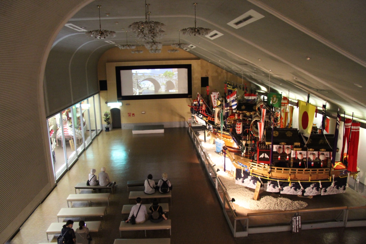 グラバー園の出口の手前にあります。必ずここを通る仕組みになっています。グラバー園の中では異色な施設ですが、長崎くんちの展示やビデオを見ると祭を見に行きたくなります。広い園内を歩き疲れたらここで少し休むのもありだと思われます。
