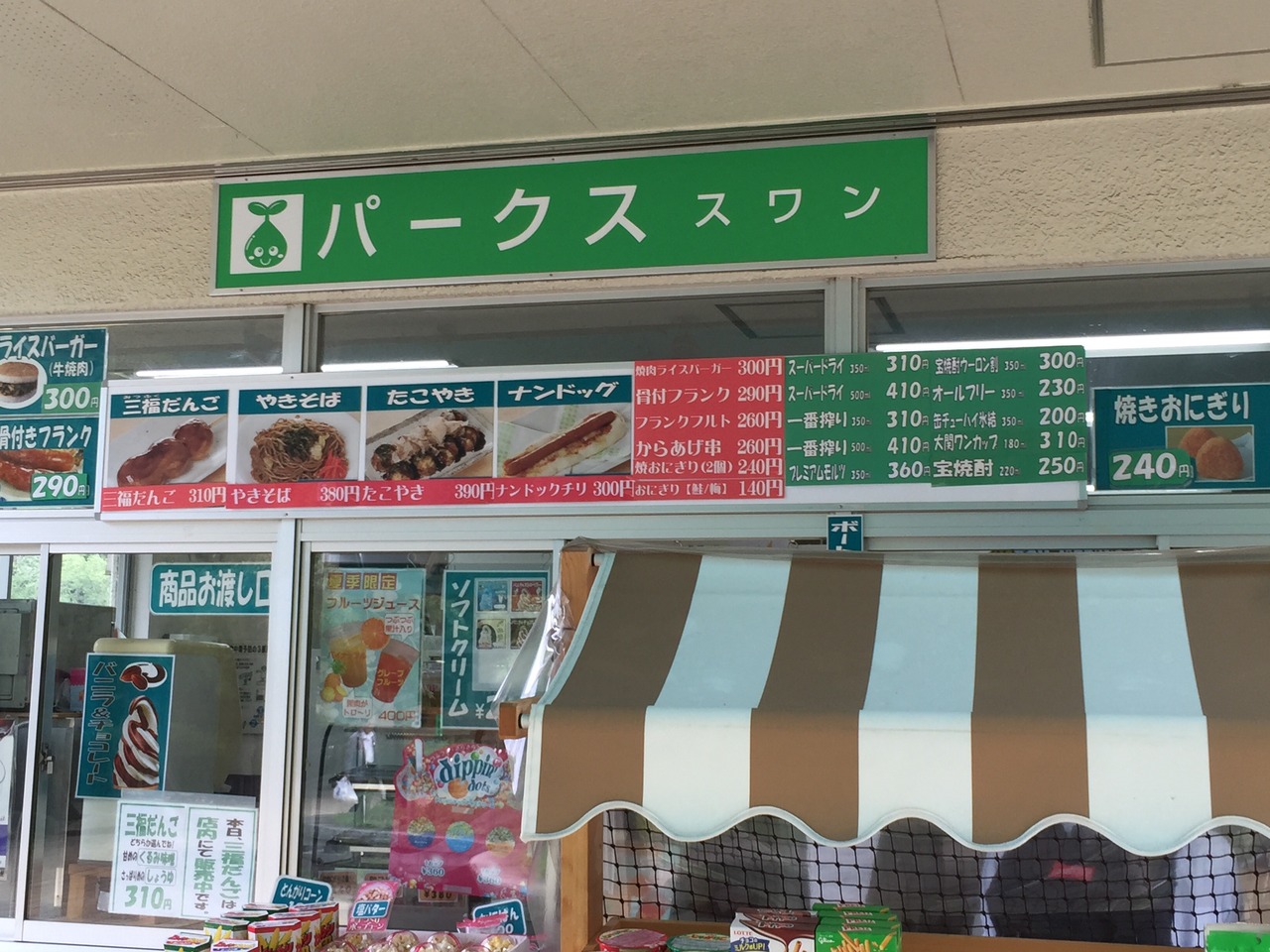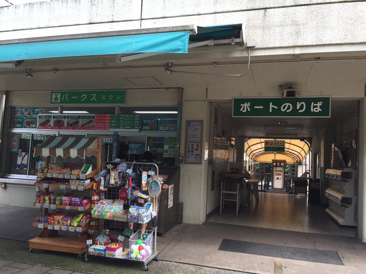 井の頭恩賜公園のボート乗り場にある売店です。たこ焼き、やきそば、焼きおにぎりなどの軽食が400円以内で食べられます。ちょっとお腹が空いた時にちょうどいいかもしれません。また、お酒好きの方には、ビール350ccが310円で買えます。