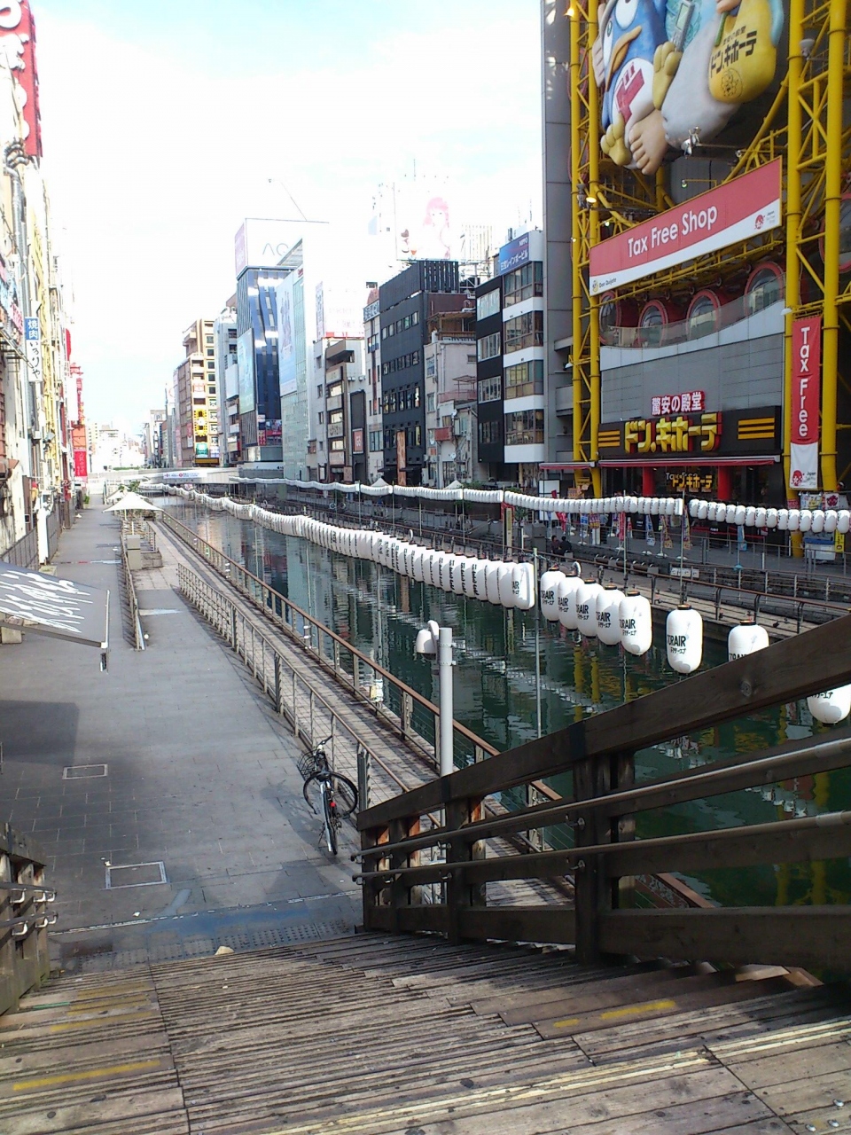 グリコやカニ道楽など全国的に大阪と言えばここというほど有名な場所ですが、今回はまだ人が少ない早朝の道頓堀を歩いて通過しました。太左衛門橋から道頓堀川を眺めると、とても味わいのある風景でした。もともとは江戸時代の芝居小屋から発展しただけあって、賑やかな場所です。