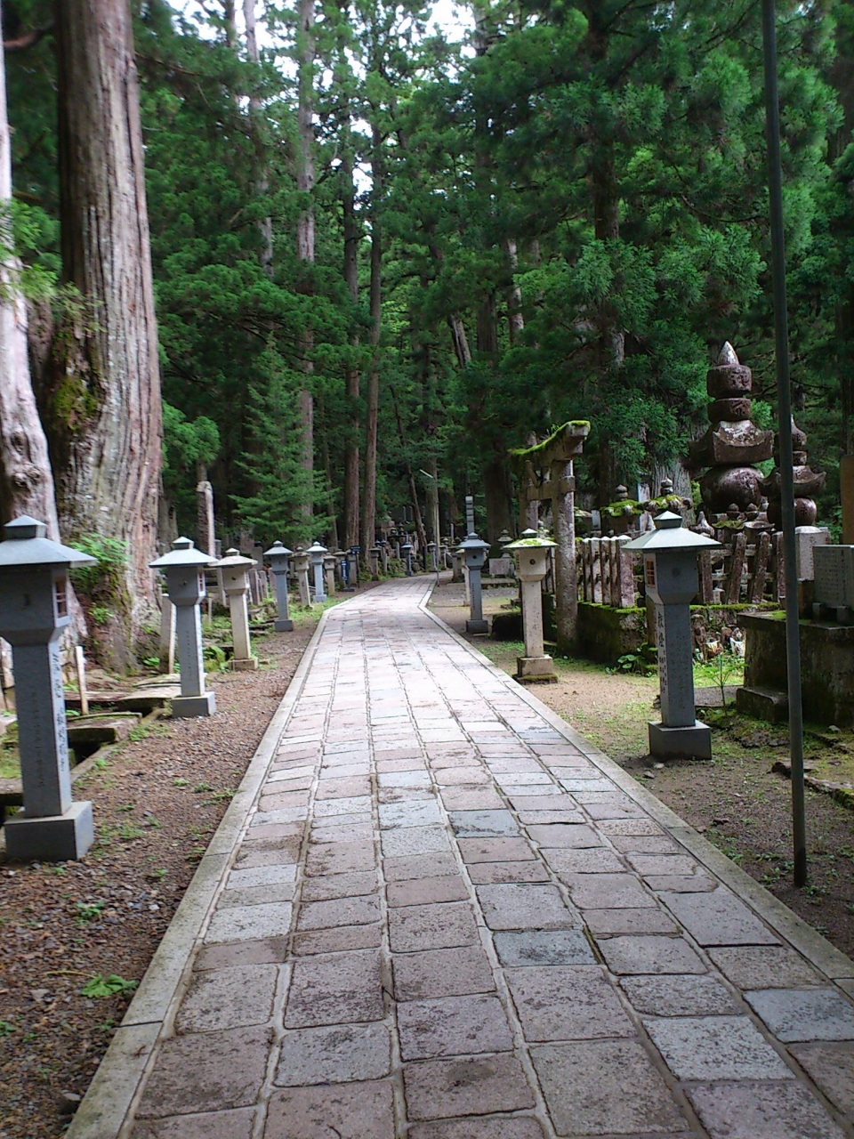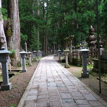 高野山奥の院へはバスで高野山口と高野山前の2つのバス停から行くことが出来ますが、是非高野山口から2キロの杉林の中を歩いて行くことをお勧めします。杉の大木の林の中に大名や有名人の墓所が並び、深々とした雰囲気がします。最後に御廟橋の前に少し開けた場所がありますが、御廟橋を渡る時には心身ともに引き締まった感じがします。