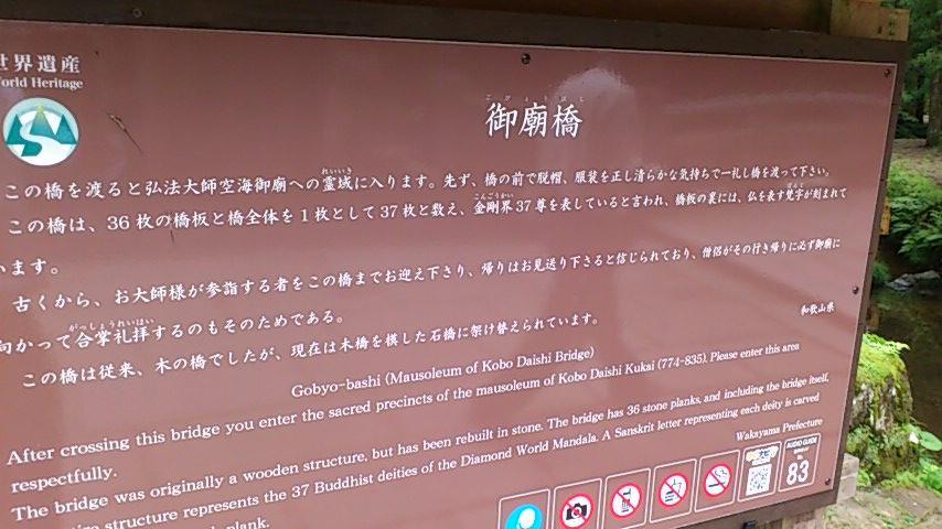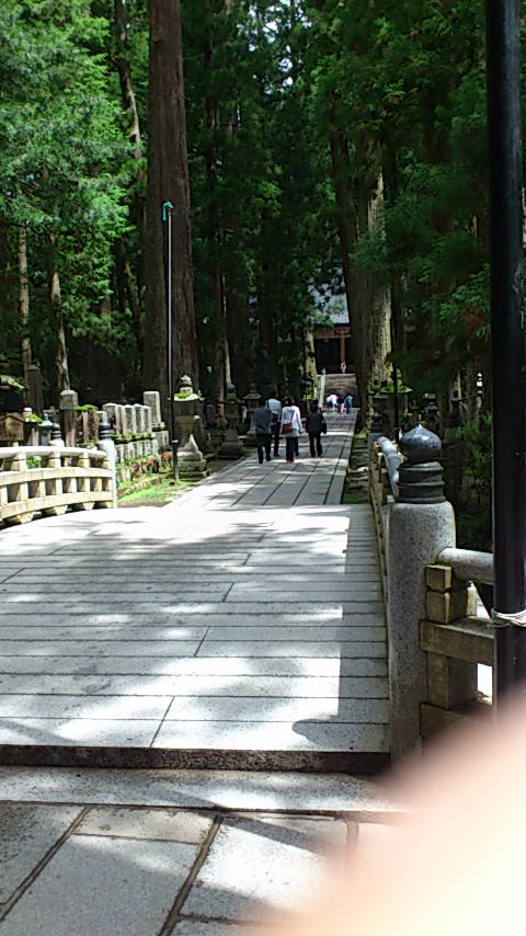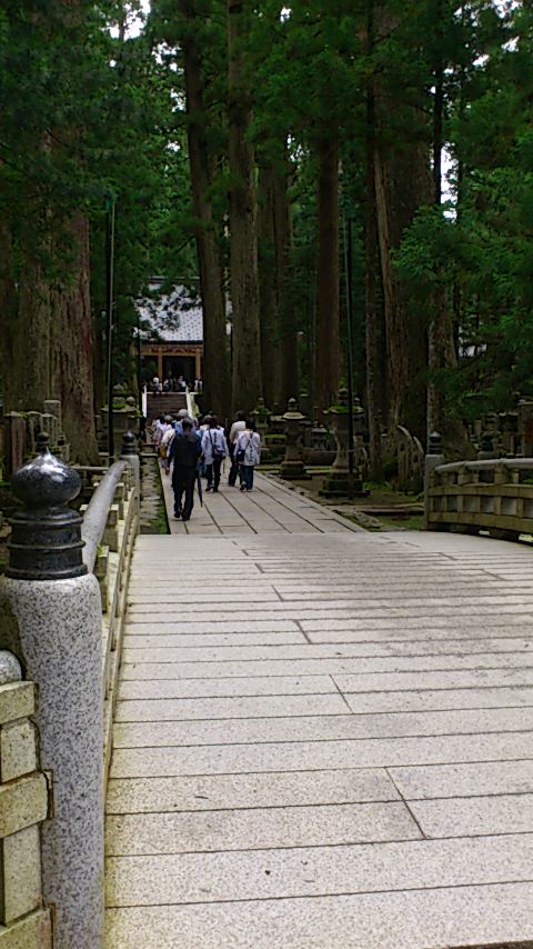 弘法大師空海が眠る御廟へと渡る橋です。奥の院の入口の一の橋を渡る時も厳粛な気持ちになりましたが、この橋を渡る時は更に心身ともに身の引き締まる思いがしました。この先は着帽や写真撮影も禁止になります。この橋まで弘法大師が迎えに来て、また見送りに来てくれる場所と言われています。まさに聖域です。