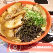 倉敷の美観地区や岡山駅前でもおなじみの小豆島ラーメンひしお。イオンモール店は替え玉無料です。ミニ丼がついたセットメニューが充実していて、ランチタイムはさらにお得な料金に。チャーシューが大きくて食べごたえもあり美味しいです。是非一度食べてみてください。