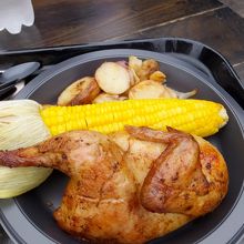 ロティサリースモークチキン、レモネードとビール(本物、アルコールです)
