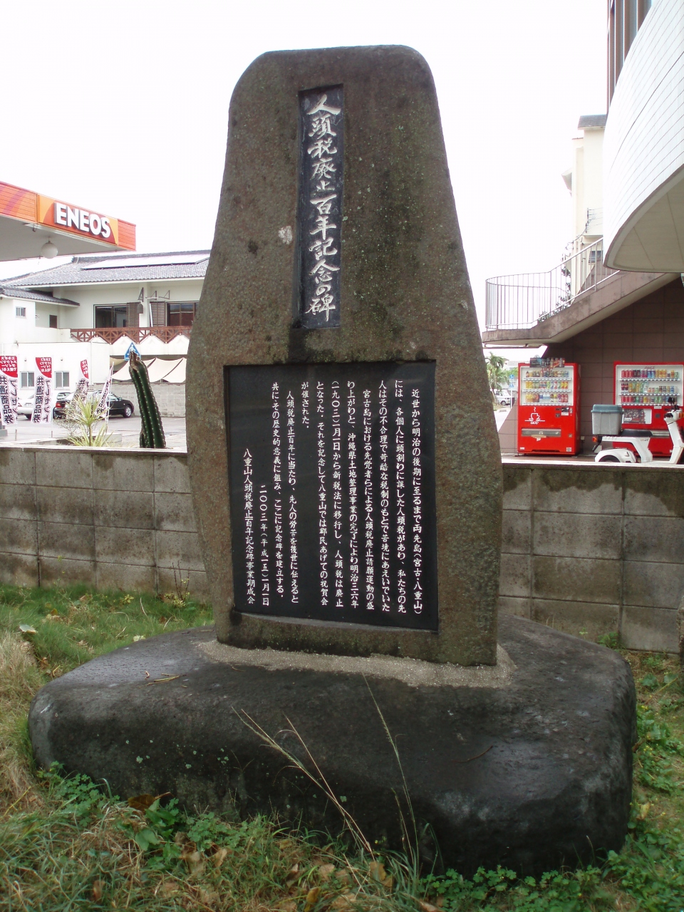 かつて琉球王国が住民に課していた過酷な税金の廃止100年を記念した石碑。