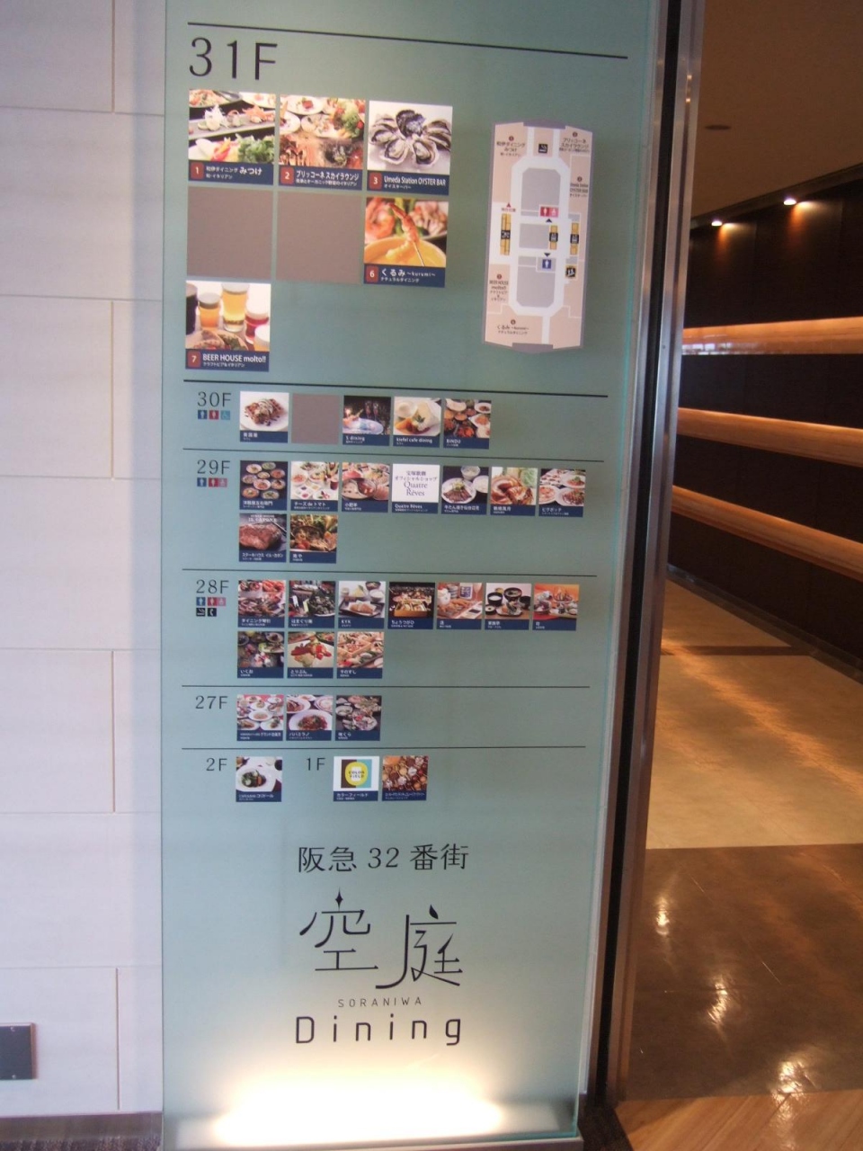 1977年に誕生した阪急梅田のダイニングフロアが2012年夏に35年ぶりにリニューアル致しました。27階から31階まで和洋中さまざまなお店が並び、雰囲気も抜群です。さらに無料で景色が見られる展望スペースが27~31階にあって特に大阪の夜景が綺麗に眺められます。ちょっとリッチな気分で食事を取るにはお薦めのダイニングフロアです。