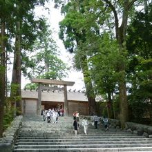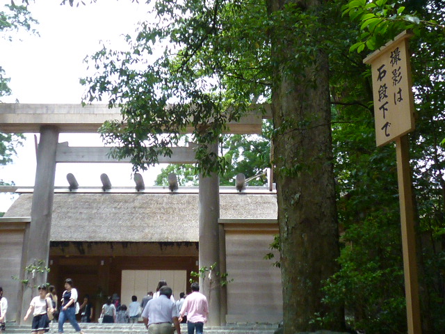 今日は伊勢神宮の散策です。まずは外宮の豊受大神宮を参拝し、ここ内宮の皇大神宮の参拝です。外宮からちょっと離れていますね、バスで10分程度でしょうか、かかりました。宇治橋を渡って右へ、ちょっと距離ありますね。外宮より内宮の方が広いように思います。造りは外宮と同じようです。また同じように撮影禁止で、ここは階段の下からの撮影とないます。守りましょうね。内宮内にはたくさんの別宮がありますので立寄ってくださいね。