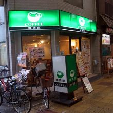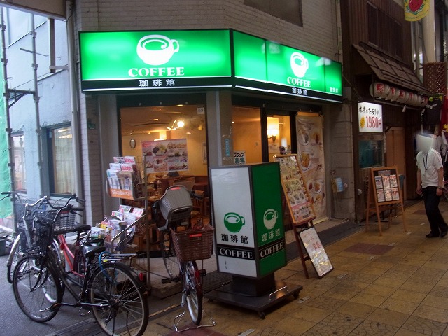 頭上に「COFFEE 珈琲館」と緑色の看板が見えて来ます。
