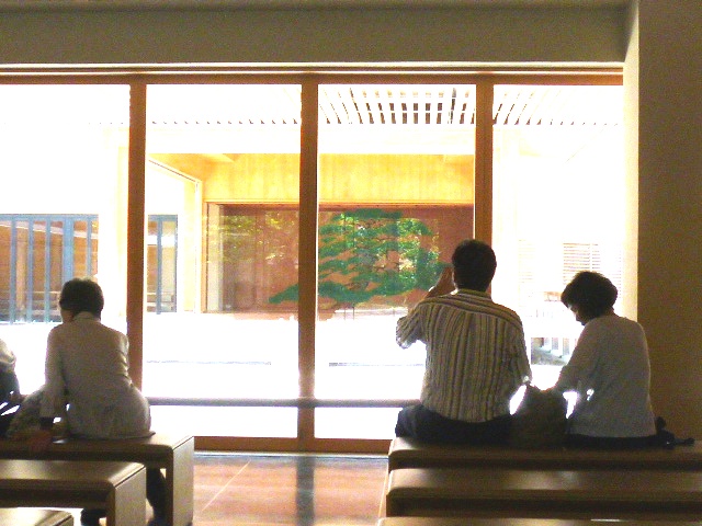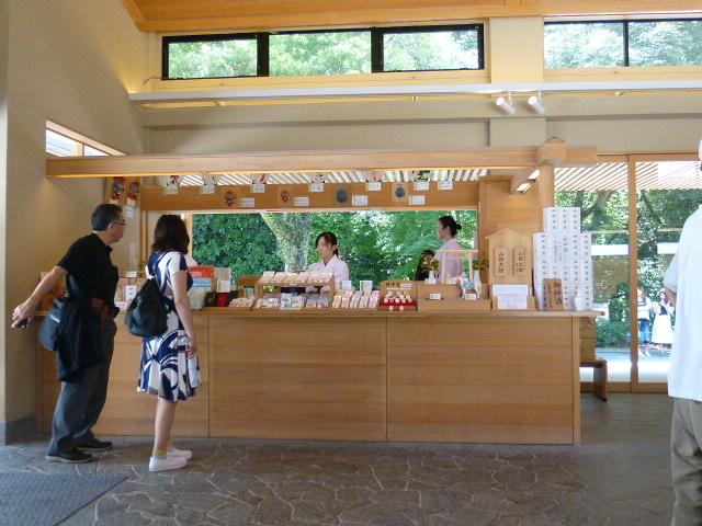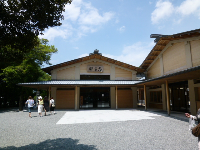今日は伊勢神宮の散策です。外宮から内宮そしてその正宮を参拝し、もう終盤です。大きな休憩所があります。参拝者が多いこともあって広くとってますね。館内にはTVモニターでの紹介や展示物、お土産も販売しています。ここで水分補給に休憩しましょう。癒すことができますよ。