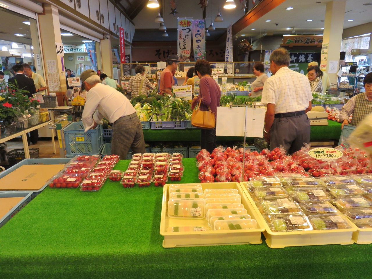此方の道の駅は上りのバイパス沿いにあります。下りからアクセスする場合は回り込むような形で進入します。日曜日の早朝に行きましたが、地元の野菜を販売しているエリアだけが異様に込み合っていました。地元の方が購入しにくるようです。併設されているファミリーマートにも御土産が並んでいました。