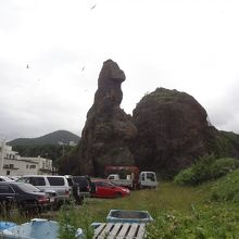 名称の通り、ゴジラに見える岩です。もちろん人口の物ではなく自然にできたものですが、まあ良くできているというか本当にゴジラに見えてしまいます。正面から見るよりも斜めや横から見たほうがよりリアルに見えました。場所は国道から観光船乗り場方面に向かい、オロンコ岩隊道の手前、右側になります。