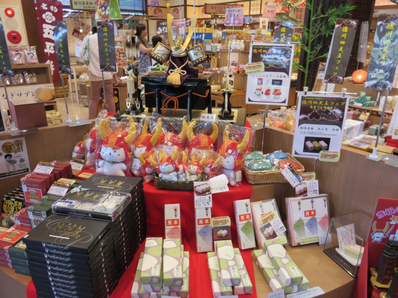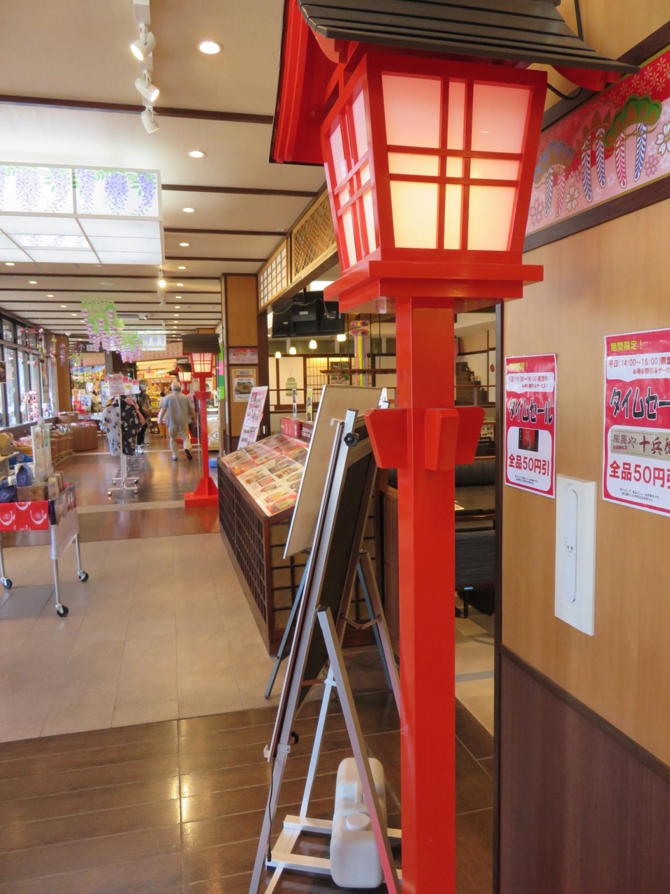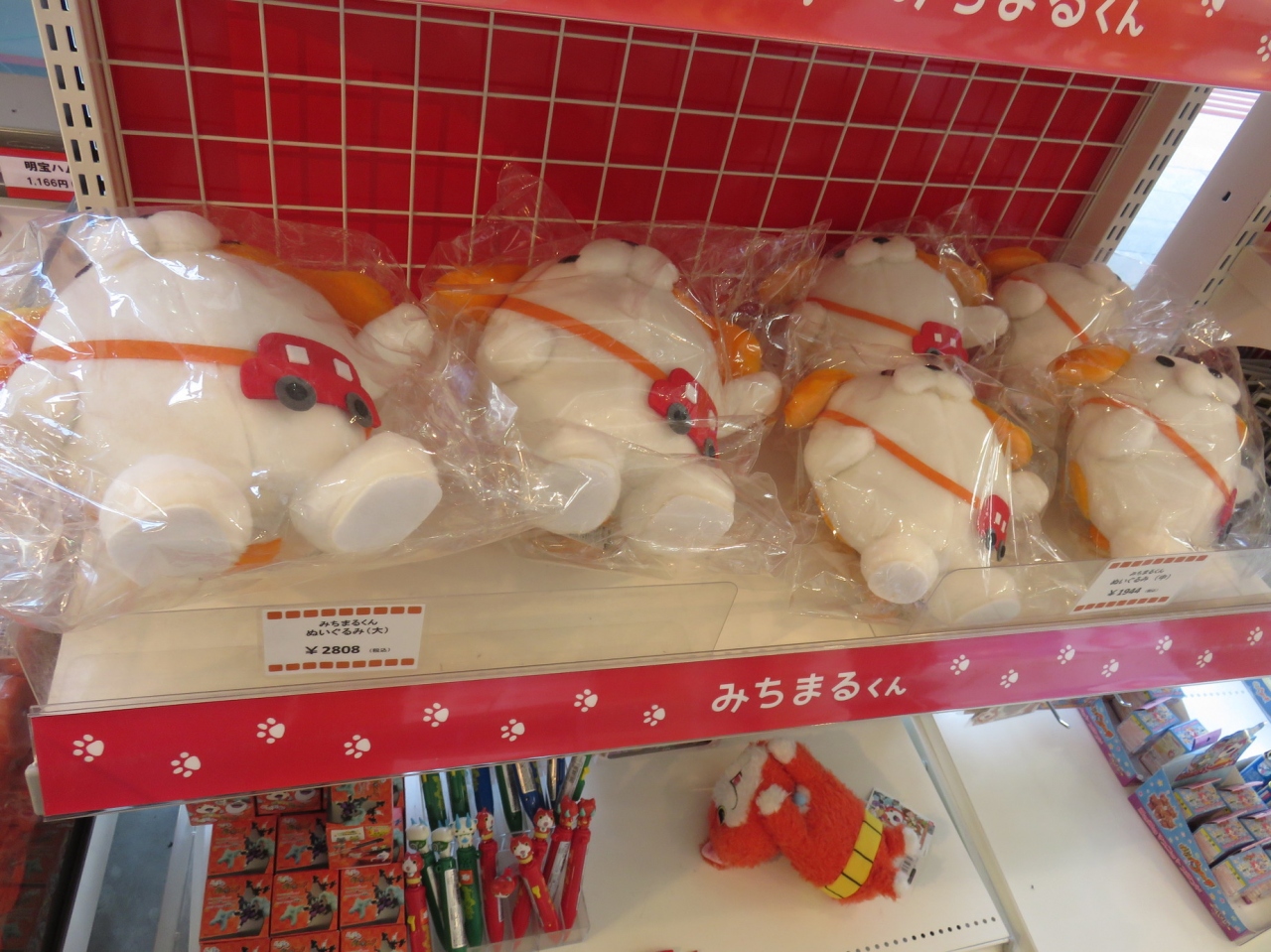 建物の中が昔の城下町をあしらったイメージになっていました。何処かのSA程の拘りは無いみたいですが。フードコートの仕切り板とかお店のディスプレーも一寸洒落ています。此方では「みちまるくん」のぬいぐるみを見かけました。