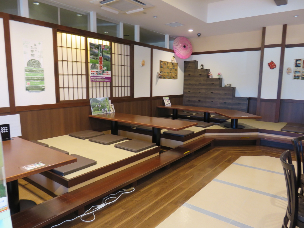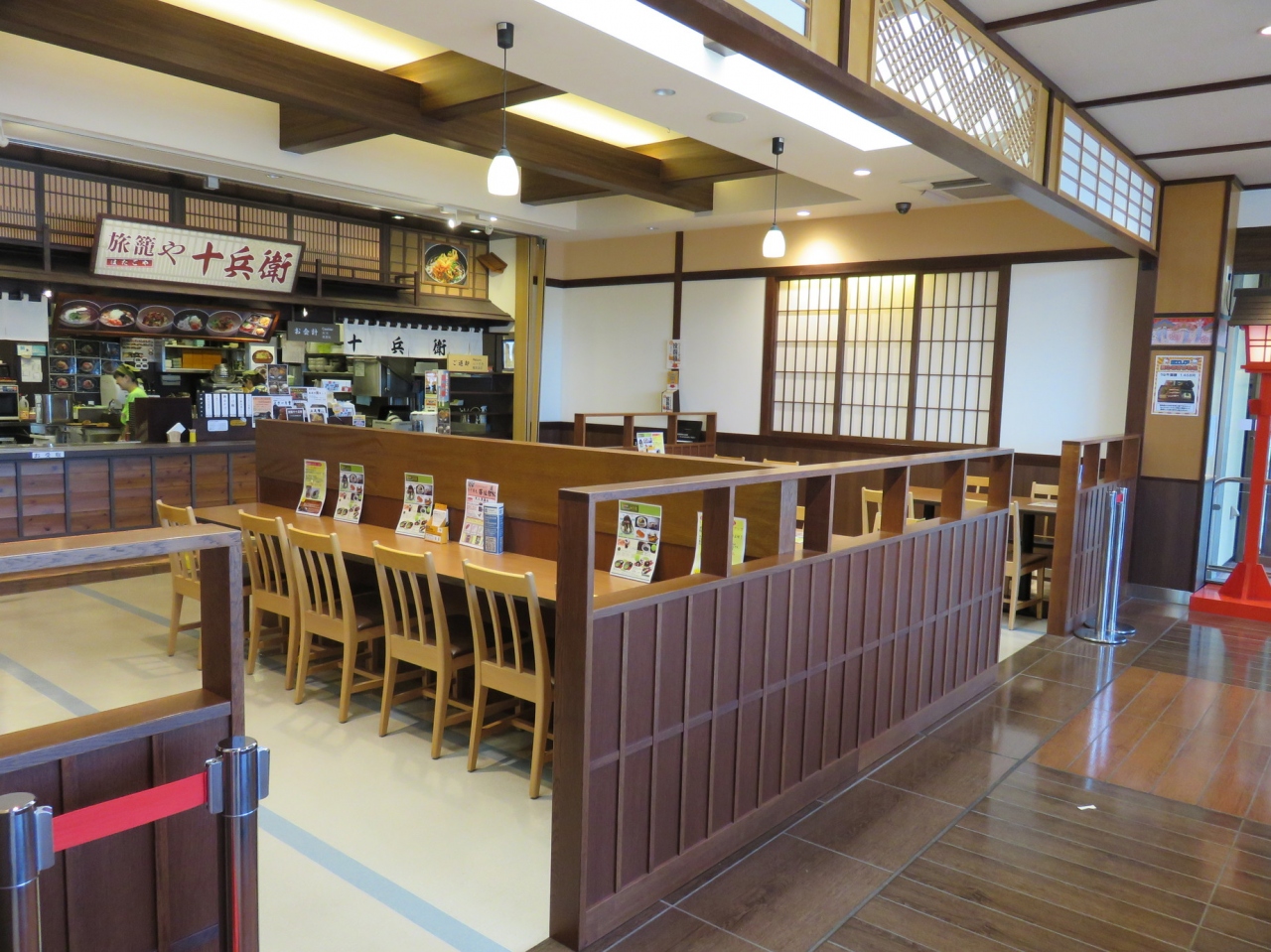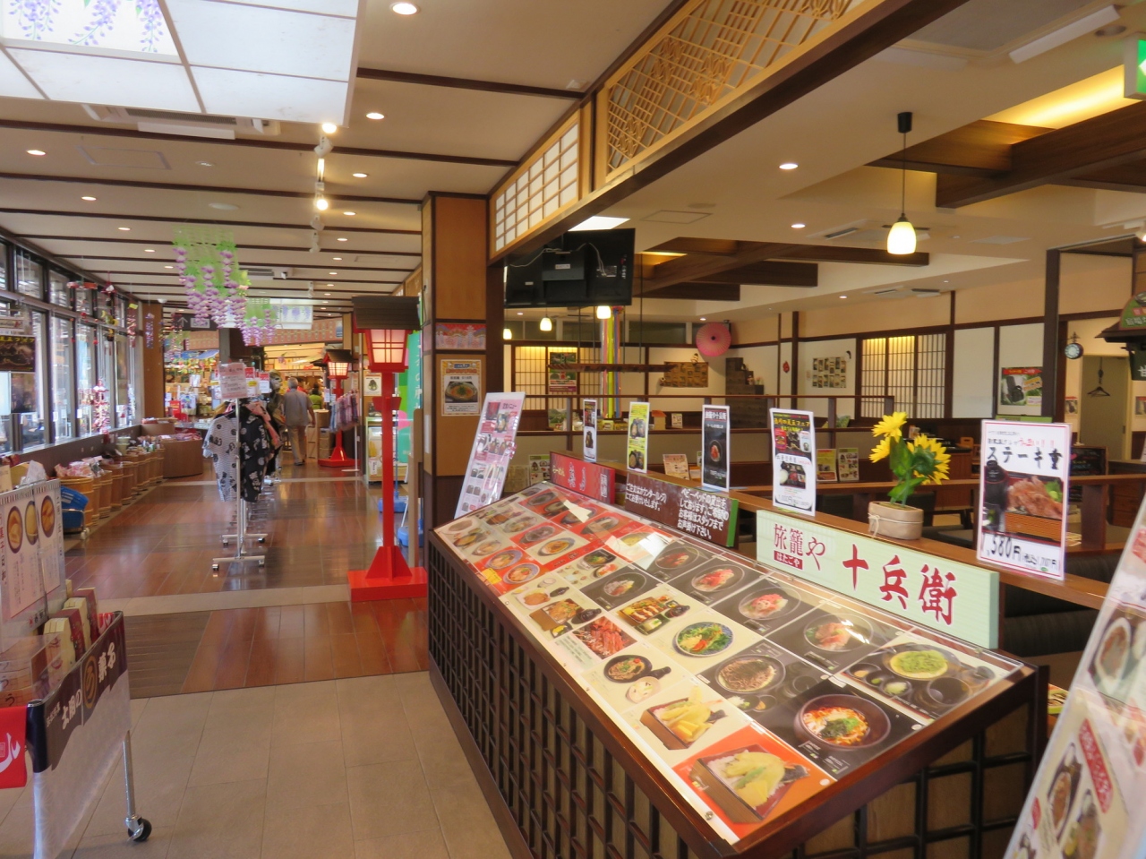 建物の中が昔の城下町をあしらったイメージになっていました。何処かのSA程の拘りは無いみたいですが。フードコートの仕切り板とかお店のディスプレーも一寸洒落ています。此方では「みちまるくん」のぬいぐるみを見かけました。