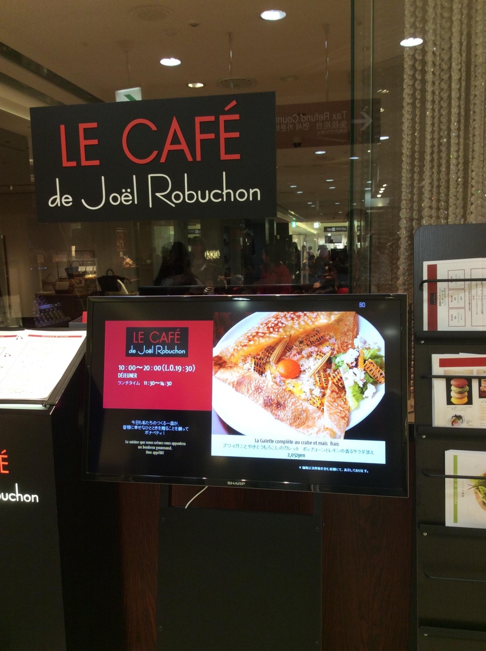 日本橋高島屋の2階にあります。 カフェで気取らずロブションの味を楽しむというジョエルロブションの料理哲学通りのお店です。赤と黒の二色の店内は落ち着いた雰囲気で良いです。ランチで2000円程、ケーキセットで1500円程なのでリーズナブルです。