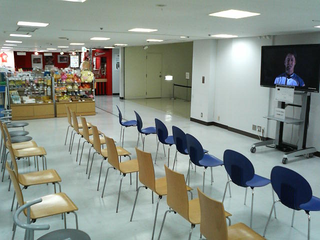 ユニフォームやマスコットのぬいぐるみなど、野球観戦に欠かせないグッズが色々並んでいる他、選手のインタビュー映像がモニターで流れていて、買い物の休憩ついでにイスに座って見ることができるスペースもありました。