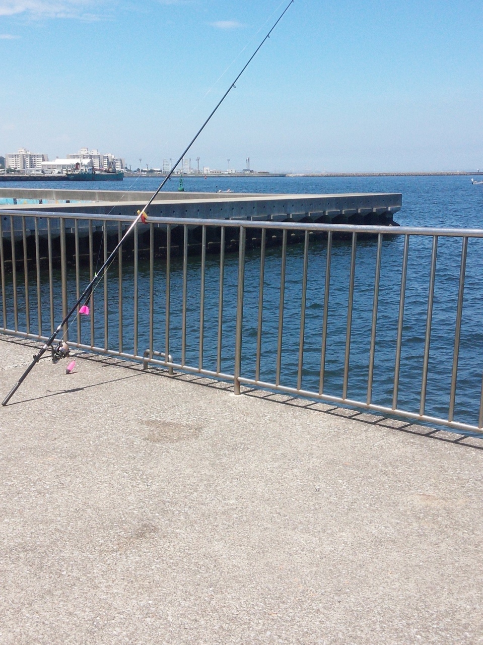 船舶の航路になっている様で船が接近したら釣り竿を引き上げて下さいと看板があります