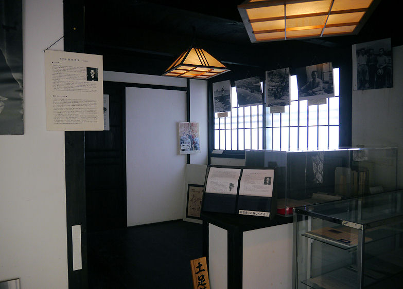 建物内部はやや薄暗く、壁に業績の紹介文や写真パネルなどが数点。