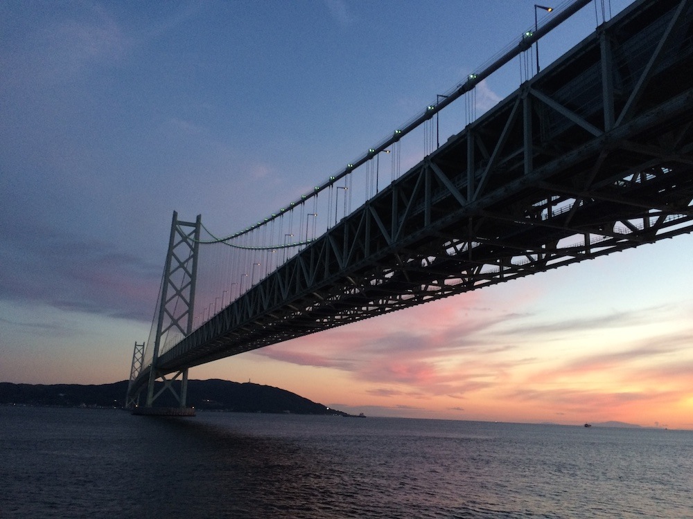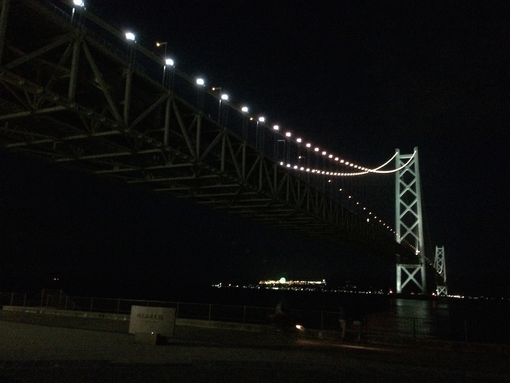 JR舞子駅をおりてすぐの場所にあるので、公共交通機関でも簡単にアクセスできます。また、橋の上に喫茶店もあるので、入場料さえ払えば気軽にいけます。そして、昼ももちろんきれいなのですが、夜景もこの通りきれいです。この写真、iPhoneでとったのです。