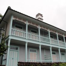東山手洋風住宅群がオランダ坂沿いの崖地に7棟密集して建っていますが、そのうち上段の奥2棟が東山手地区町並み保存センターとして無料で開放されています。建物は質素な造りで社宅か賃貸住宅として造られた様です。