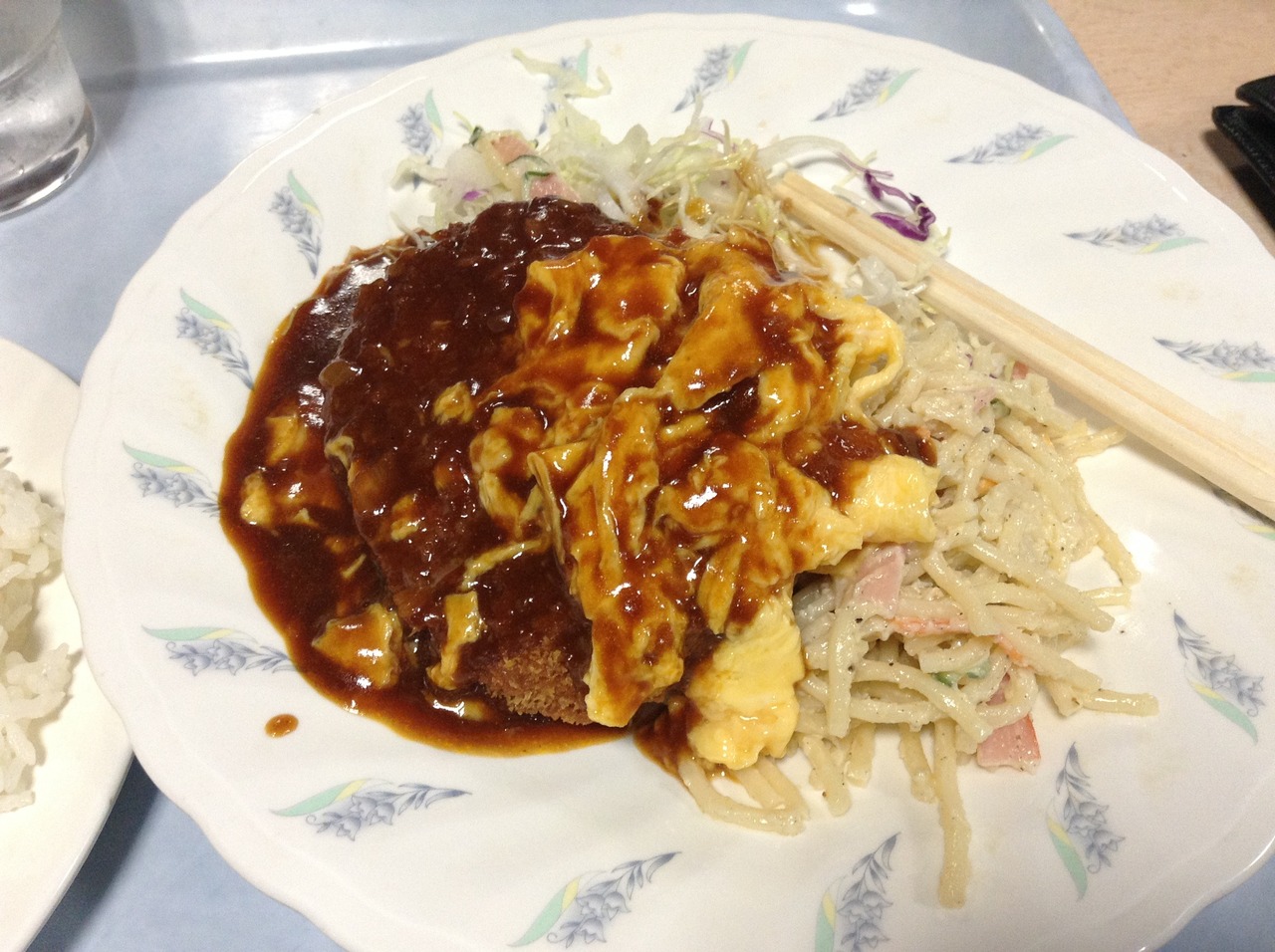 メンチカツ定食を注文。メンチカツにドミグラスっぽいソースがかかっていて、なかなかジューシーで美味しいメンチカツでした。