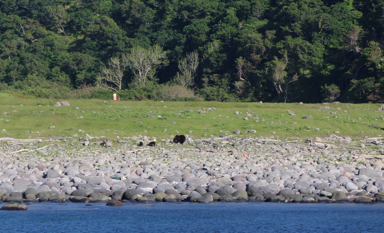 ルシャ湾まで行く観光船に乗るとヒグマに出会える確立が高まる。