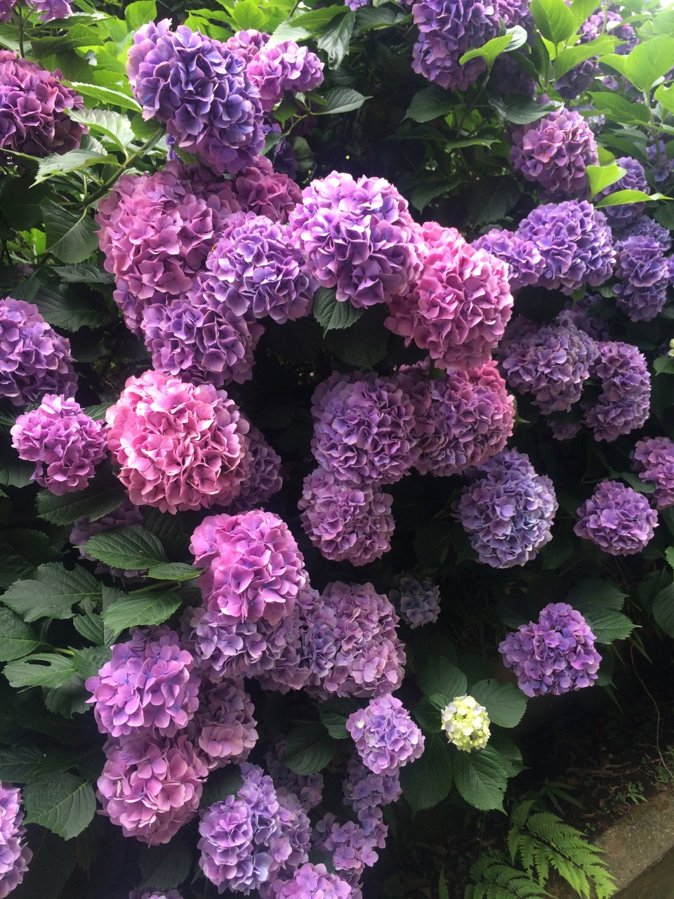 シーズン中の平日に訪れました。平日でも結構な数の人がいましたが、ゆっくり眺めたり写真を撮るのに不自由する程ではありませんでした。色の濃さは薄い水色〜濃い紫色とそれぞれですが、ブルーを基調とした一面の紫陽花は本当にきれいでした。
