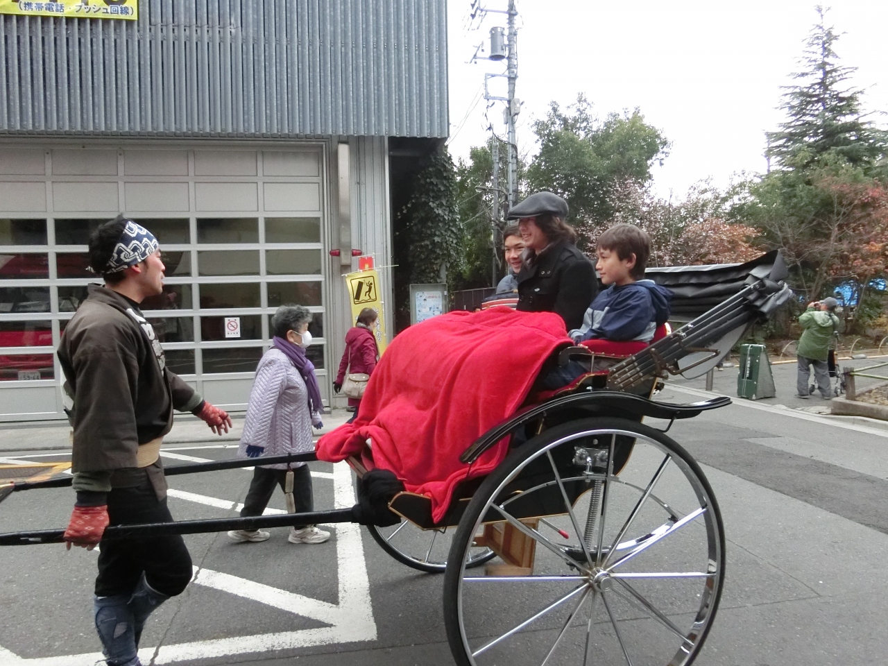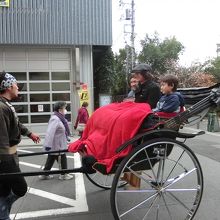 門を出ると、丁度外人さんが人力車に乗っていました。