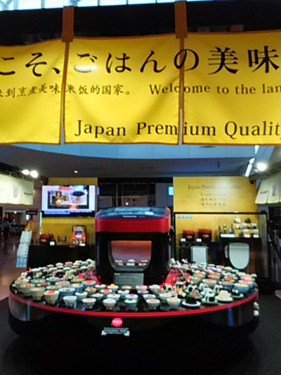 羽田空港国際線ターミナルの到着フロアーに、やたら目立つ大きな炊飯器と、和食や、寿司。