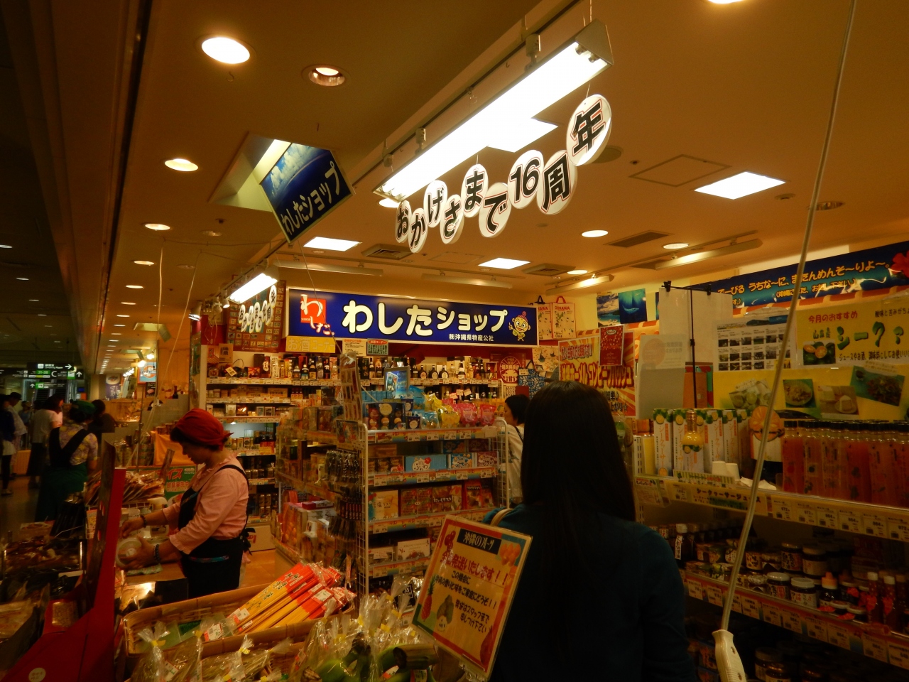 国際通りのわしたショップに行けなかったり、行っても買い忘れたものがある場合には、ここで買い物ができます。お店のスペースはあまり広くはありません。国際通りのわしたショップではWAONが使えたのですが、ここでは電子マネーはEdyのみのようでした。