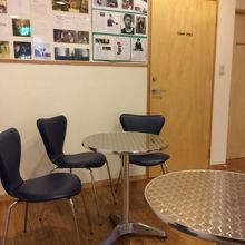 待合室は、テーブルが4つほど、自動販売機ひとつ。