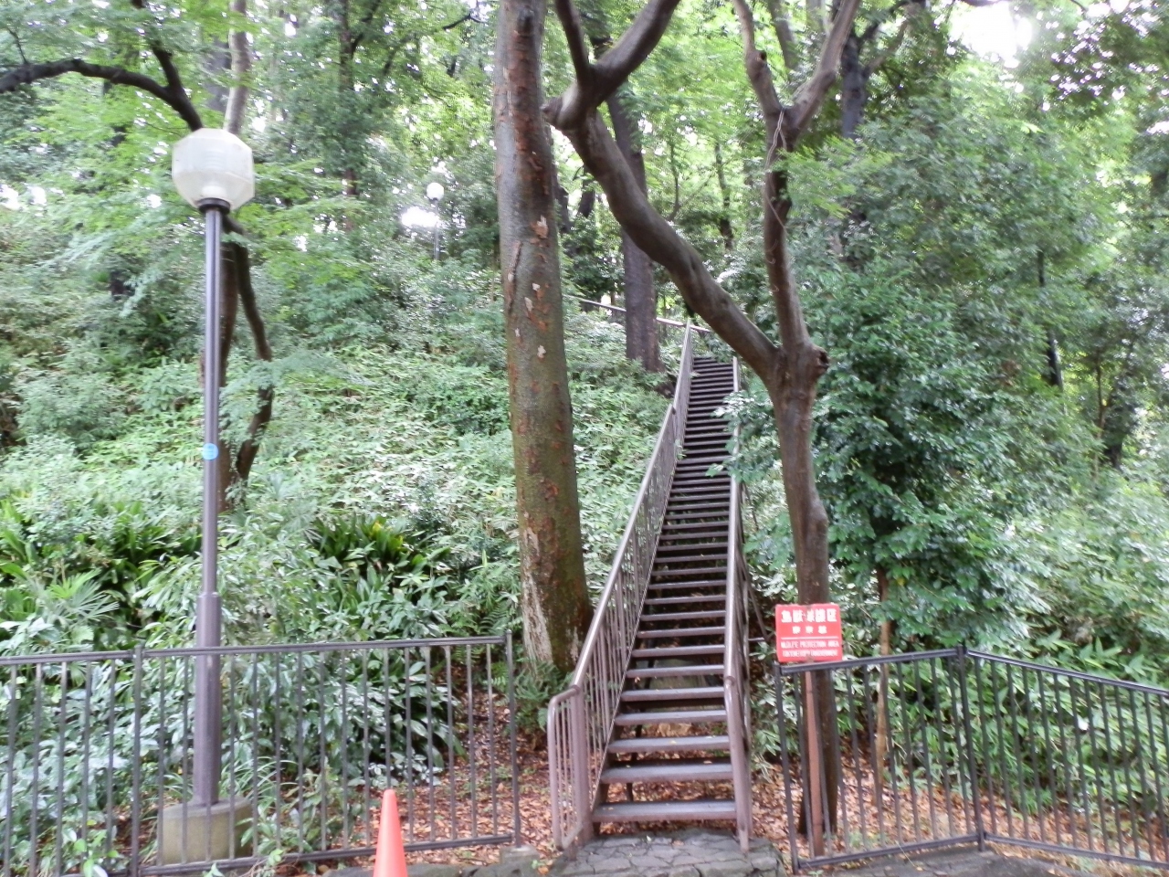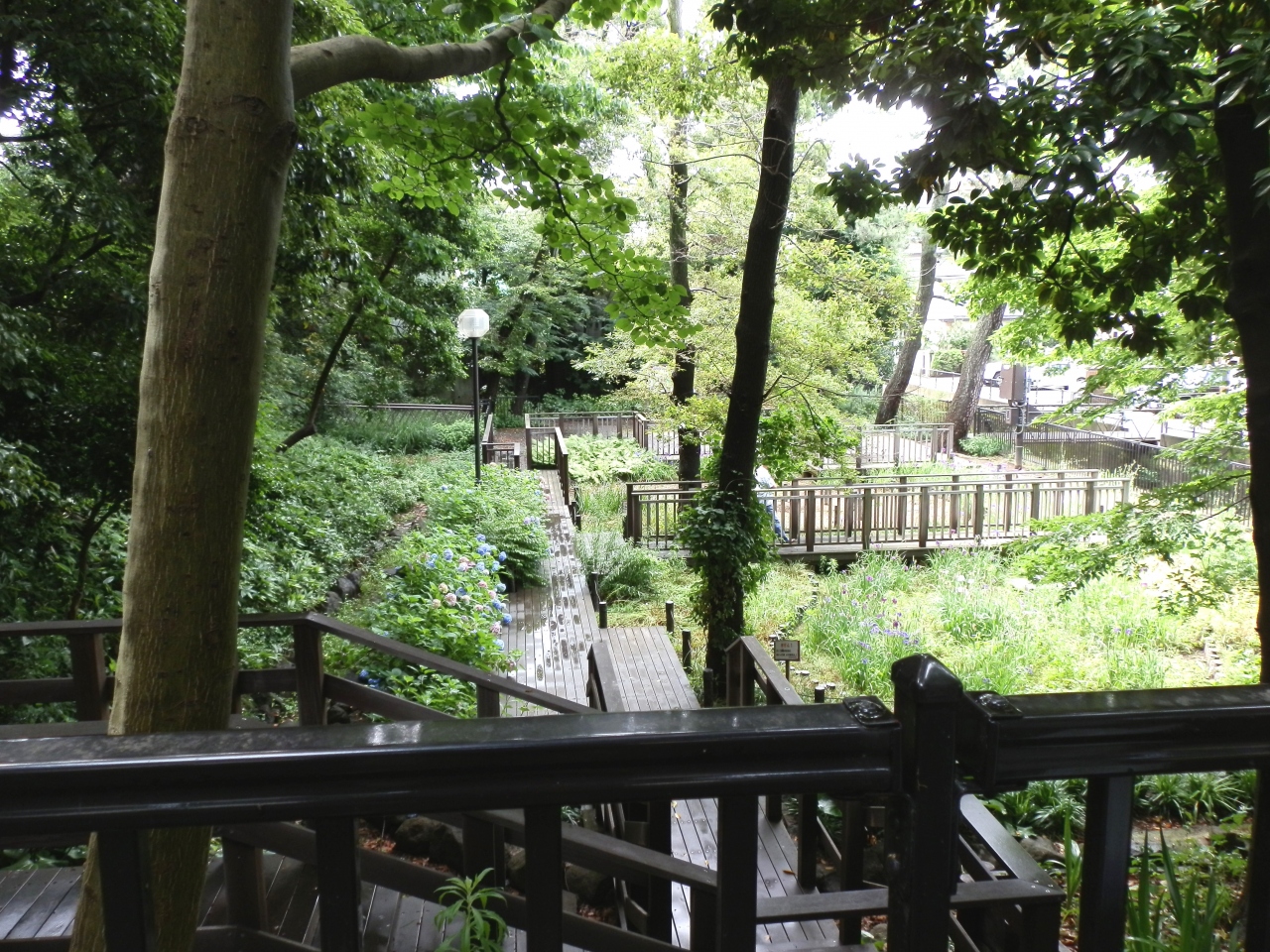 丸子川沿いに上野毛自然公園がある。崖線の斜面を利用した公園で、木々の間を縫うように階段が上へ伸びている。斜面をおおう深い緑は野趣に富んでおり、夏には絶好の避暑地になるでしょう。東京に素敵な緑の森が残されている、不思議な感じがしました。