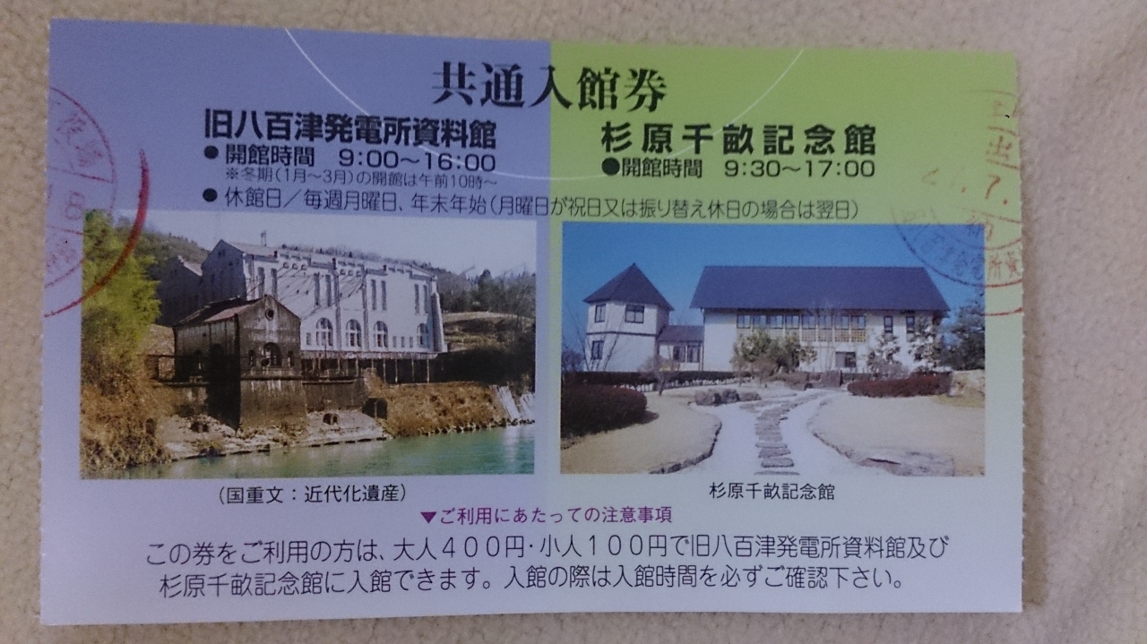 友人と2名で本来の目的地である「旧八百津発電所資料館」へ行った時に「入場料が本来は300円ですが、杉原千畝記念館とセット券ですと400円になります」との事でセット券を購入し立ち寄った。無知な私たちは杉原千畝を知らなかったが、もちろんこちらの方が有名。中は撮影禁止。ロッジ風の造りで読む展示品が多い。こじんまりとした施設。2015/12には映画も公開されるとの事。ゼヒ見ようと思う。