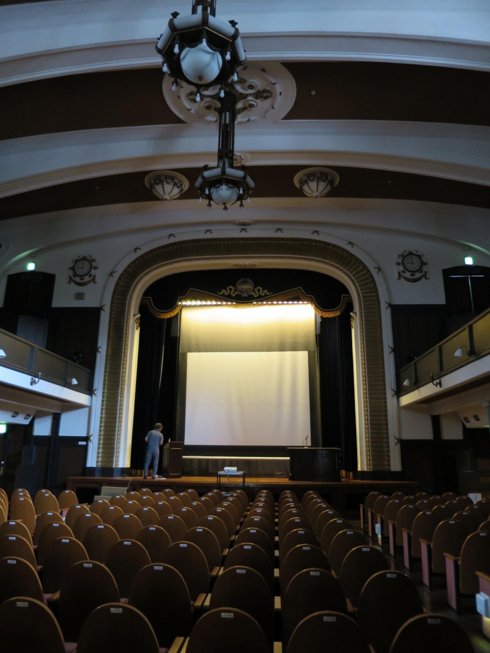 異国情緒漂う洋風感覚の歴史ある建造物ですね、中に入り大きなホールがありますがこれが立派です。時代を感じさせる内装でまるで映画のセットのようですね!いまでもこちらのホールは、現役で使われているのには、驚きました。