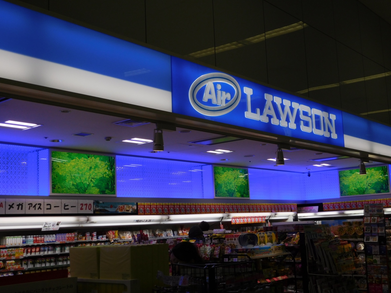 地下一階、モノレール改札口を出て、南ウィング方面の奥の方にあります。普通のローソンよりも鮮やかな青色の看板で、オープン型の店舗でした。品揃えは、お弁当やデザート、飲料などが充実しているかなと思いました。日用品などの小物類は、レジのすぐ近くに置いてありました。東京土産なども置いてあり、結構利用する人が多く、レジには列が出来ていました。