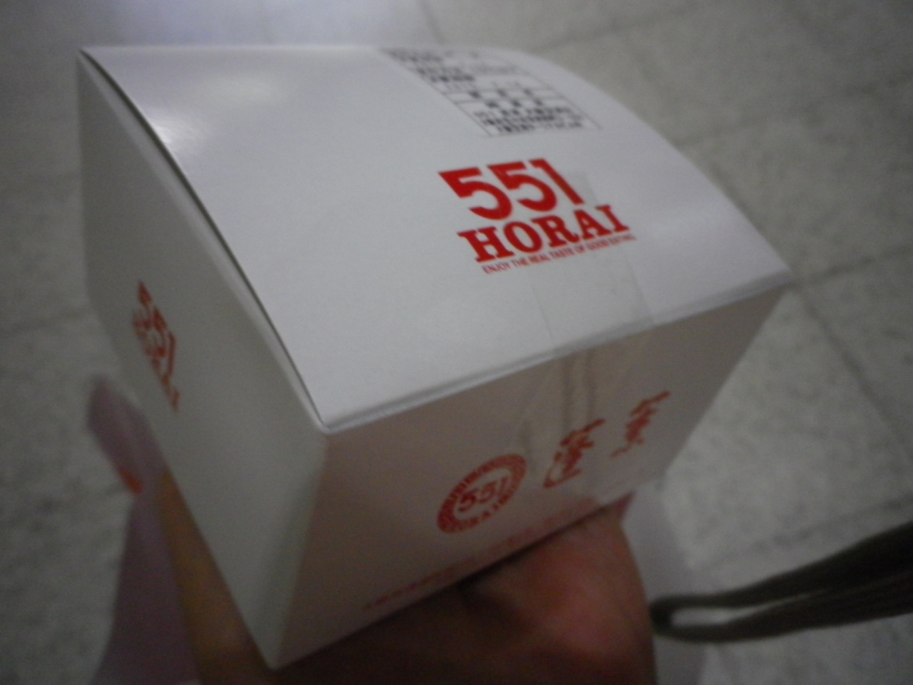 大阪土産の定番551の蓬莱。お土産用に6個入りのぶたまんを購入した後、小腹がすいていたのですぐ食べるので1個だけ別に欲しい、というと1個入りの箱に入れられて出て来た。長年蓬莱を買っているが白い箱は初めて見た。
