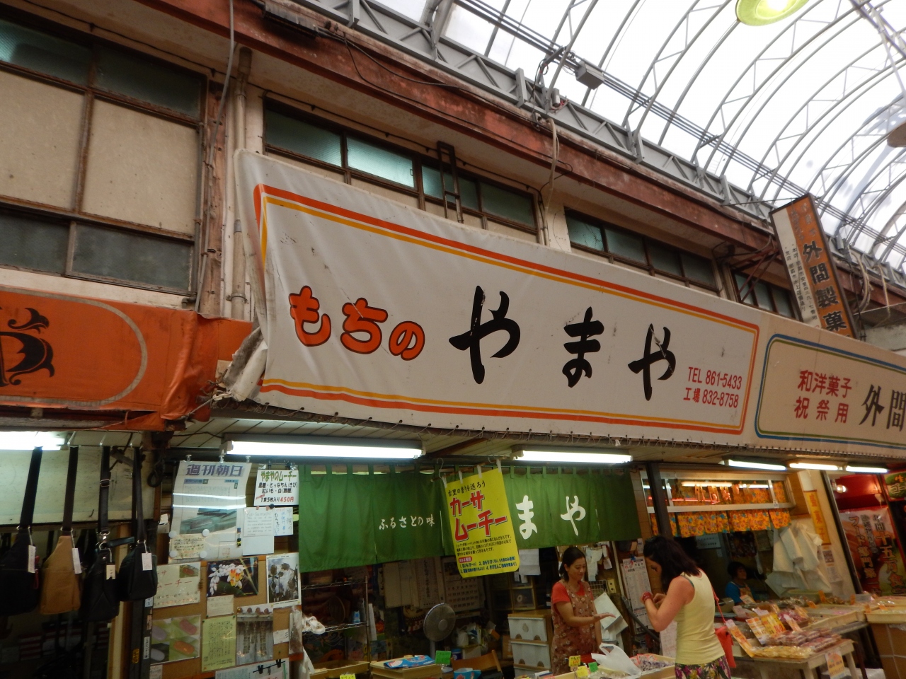 国際通りから市場本通りを少し歩いて行くと左側にあります。沖縄の伝統の餅菓子のムーチーなどが買えます。ムーチーはサンニン(月桃)の葉に包まれていて、とてもいい香りがします。種類は黒糖、紅芋、きび、白と4種類あります。ムーチーは沖縄の一番寒い時期に食べる物と思っていましたが、このお店では年中買えるようで、とても嬉しいです。