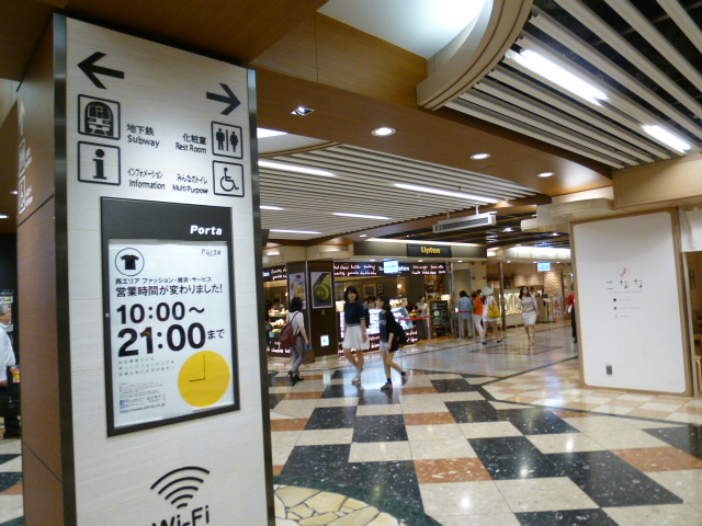 京都駅中央口前の地下にある地下街「ポルタ」です。衣食住はもちろん土産品など何でも揃っていますね。7月は京都最大のイベントの祇園祭の開催です。それにちなんでか、地下街のBGMはそれらしく、祇園祭りのお囃子が流れています。口コミで音声を伝えることが出来ませんが、訪問し皆さんも聞いてみてください。京都らしい夏を感じることでしょう。