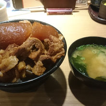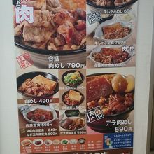 ニュー新橋ビルの1階にあり、お店にはビルの中からも外からも入ることができます。牛しゃぶ飯、肉めし、デラ肉めしの三種類があり、合盛もありますが、オススメはデラ肉めし。トロトロのスジ肉と味の染みた豆腐と大根、ゆで玉子がご飯の上に踊っているよう。少し甘味のきいたすき焼き風のお肉とご飯のコラボレーションは、ガッツリいきたい丼ものという印象です。パワーをつけたいときに食べたい丼ものです。