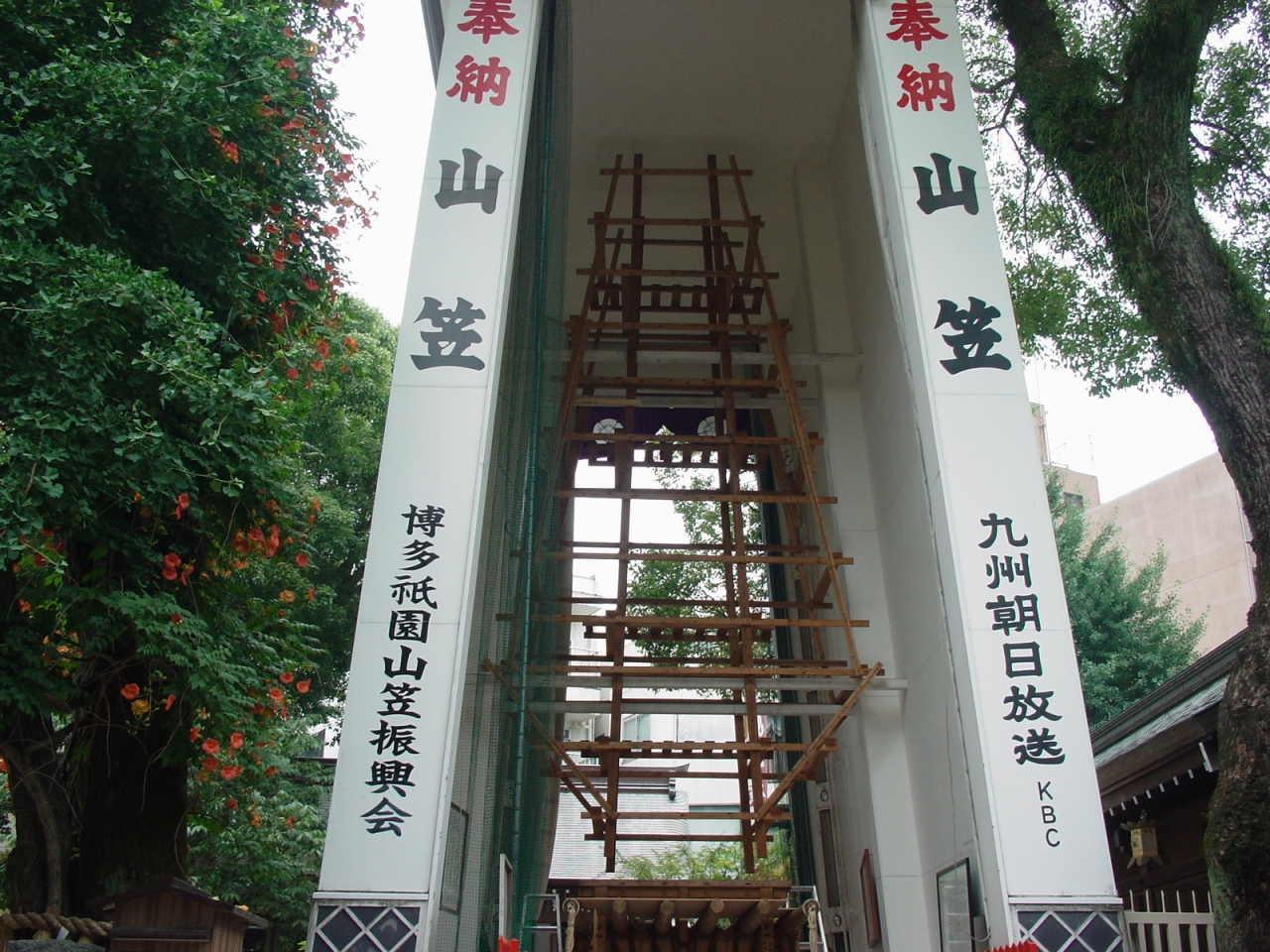 毎年7月に開催されるお祭り「博多祇園山笠」は、7/1"お神入れ"~7/15"追い山笠"までの15日間催されますが、祭りのメイン会場となる場所がこの神社になります。