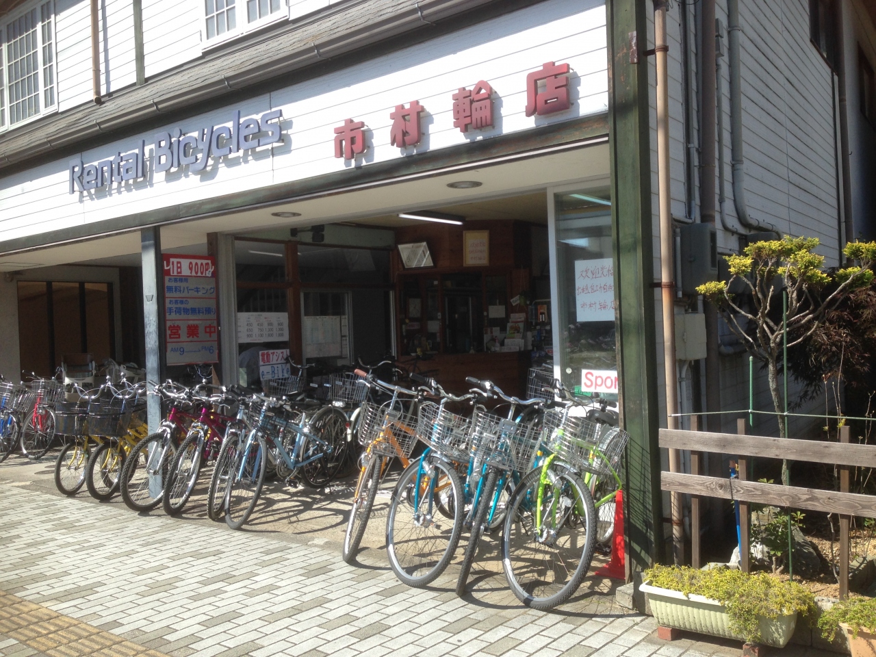 レンタサイクルの情報に、これは名案ということで、さっそく探すと、なんと駅を降りるとすぐから、レンタサイクル店が目に入り、ネットで見ていた市村輪業さんで借りることにしました。