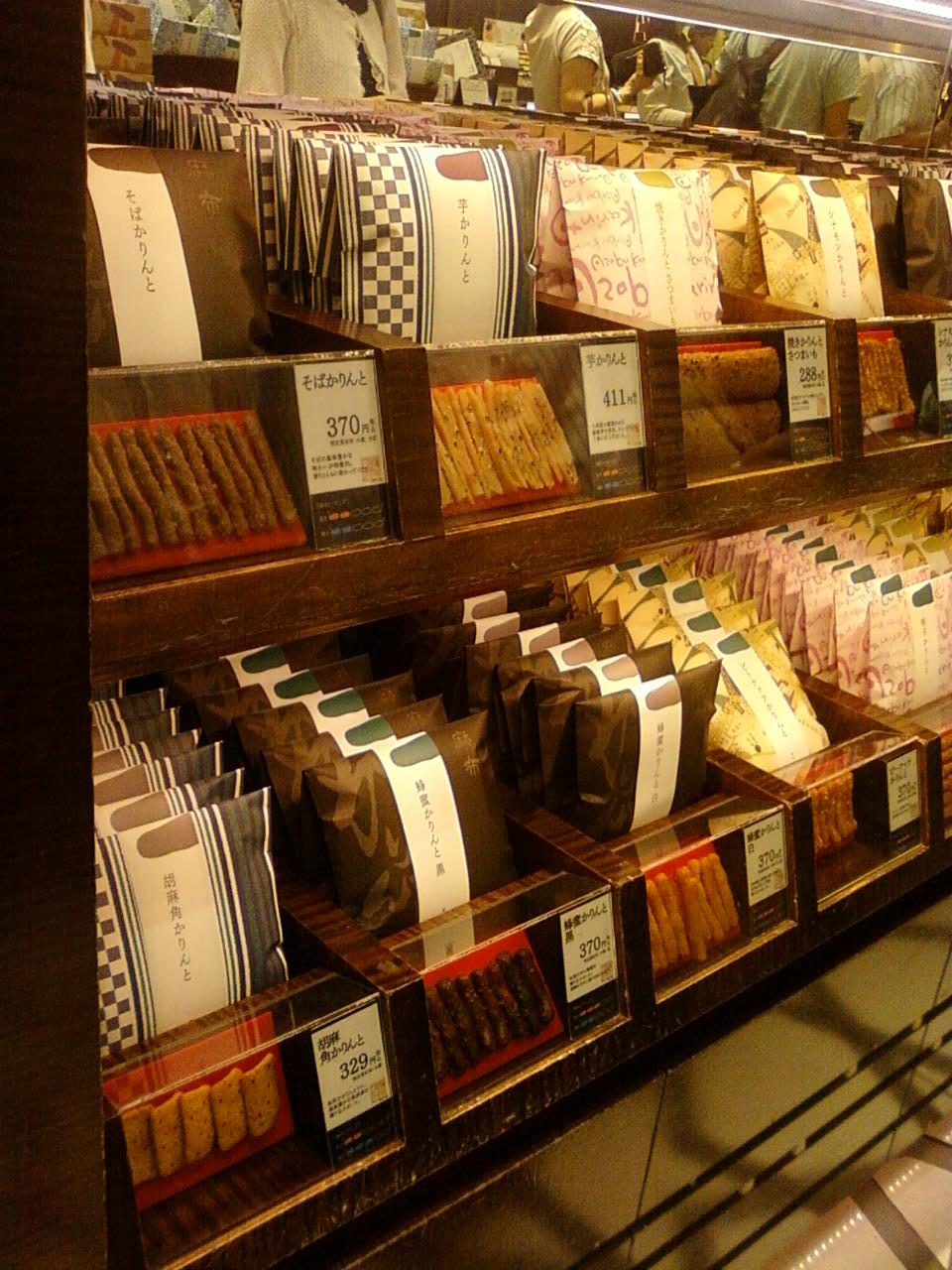 ここの麻布かりんとさんは、JR東京駅八重洲口のすぐそばにある、大丸東京の一階にあります。麻布十番で有名なお店ですが、デパ地下にもあちこち進出していて確実にお客さんをつかんでいます。さまざまなフレーバーのかりんとうが、とっても素敵なパッケージの袋に入っています。かわいくて、特に女性向けの贈り物に喜ばれますよ。