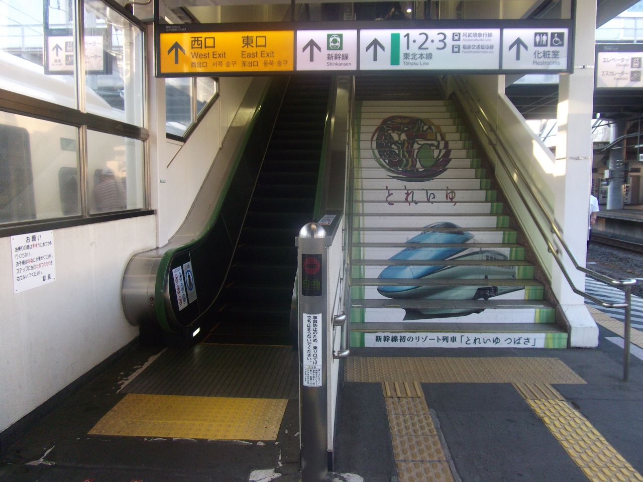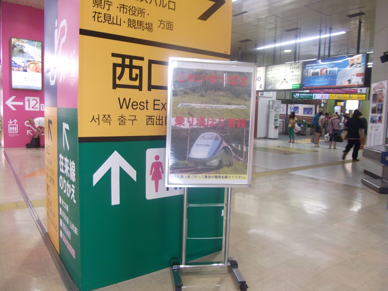 まもなく1年たとうとしていますが、リゾート新幹線として有名な「とれいゆ」。びゅう商品でなければ乗れないと思い、しばらく2名でないのでところが1名でも普通に乗れるんです。また混んでいるとうわさの足湯も乗れました。驚くことは、新幹線なのに在来から発車します。