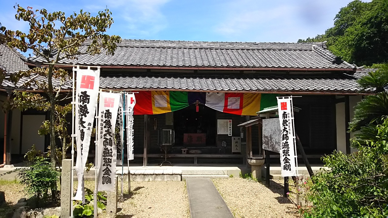 知多四国霊場の53番の札所。小野浦海水浴場の一本道を隔てた静かな場所にあります。