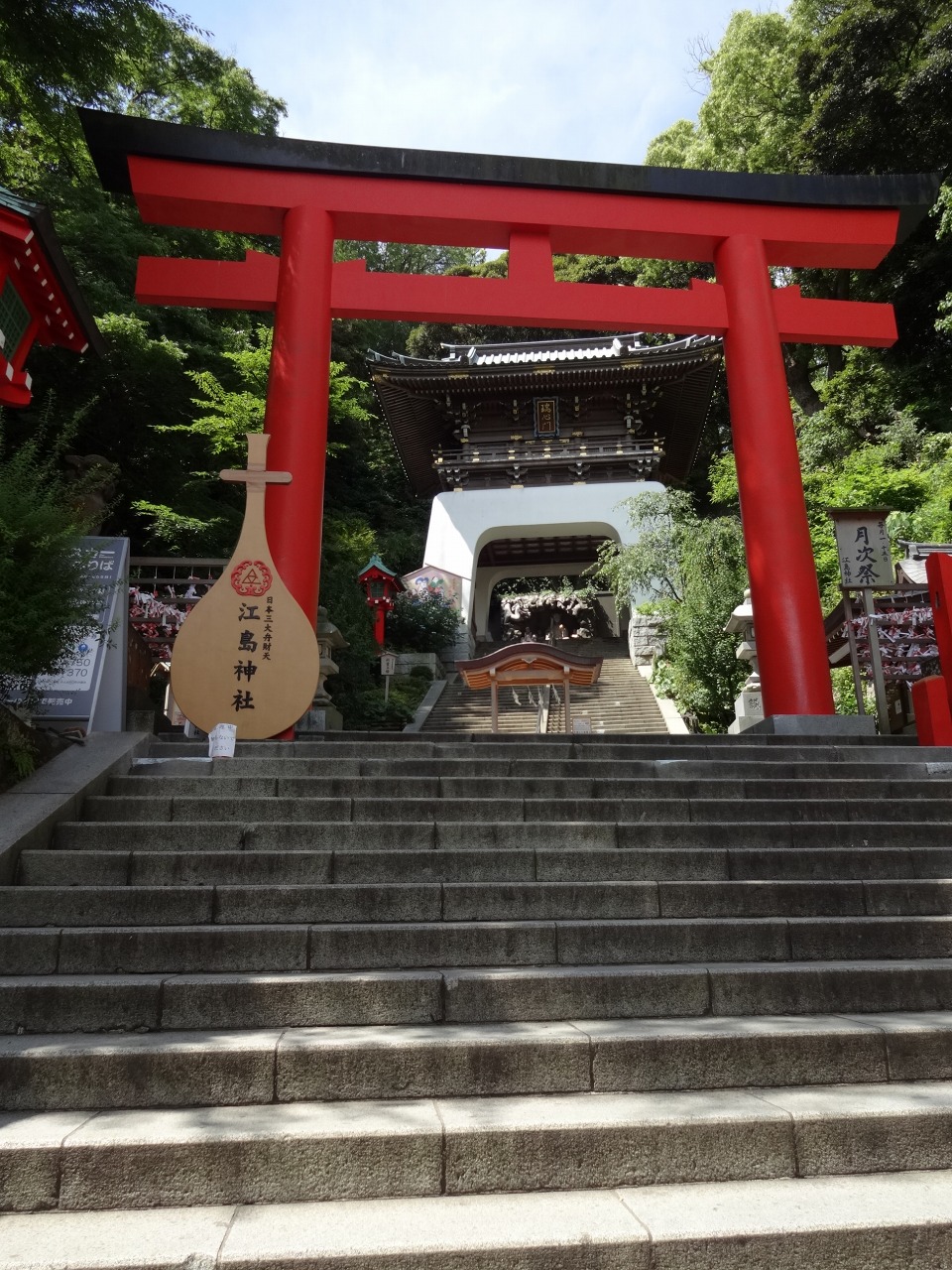 江ノ島は周囲4km、標高60mの陸繋島で、昔はは引き潮の時のみサシが現れて対岸の湘南海岸と地続きとなって歩いて渡ることができたそうです。