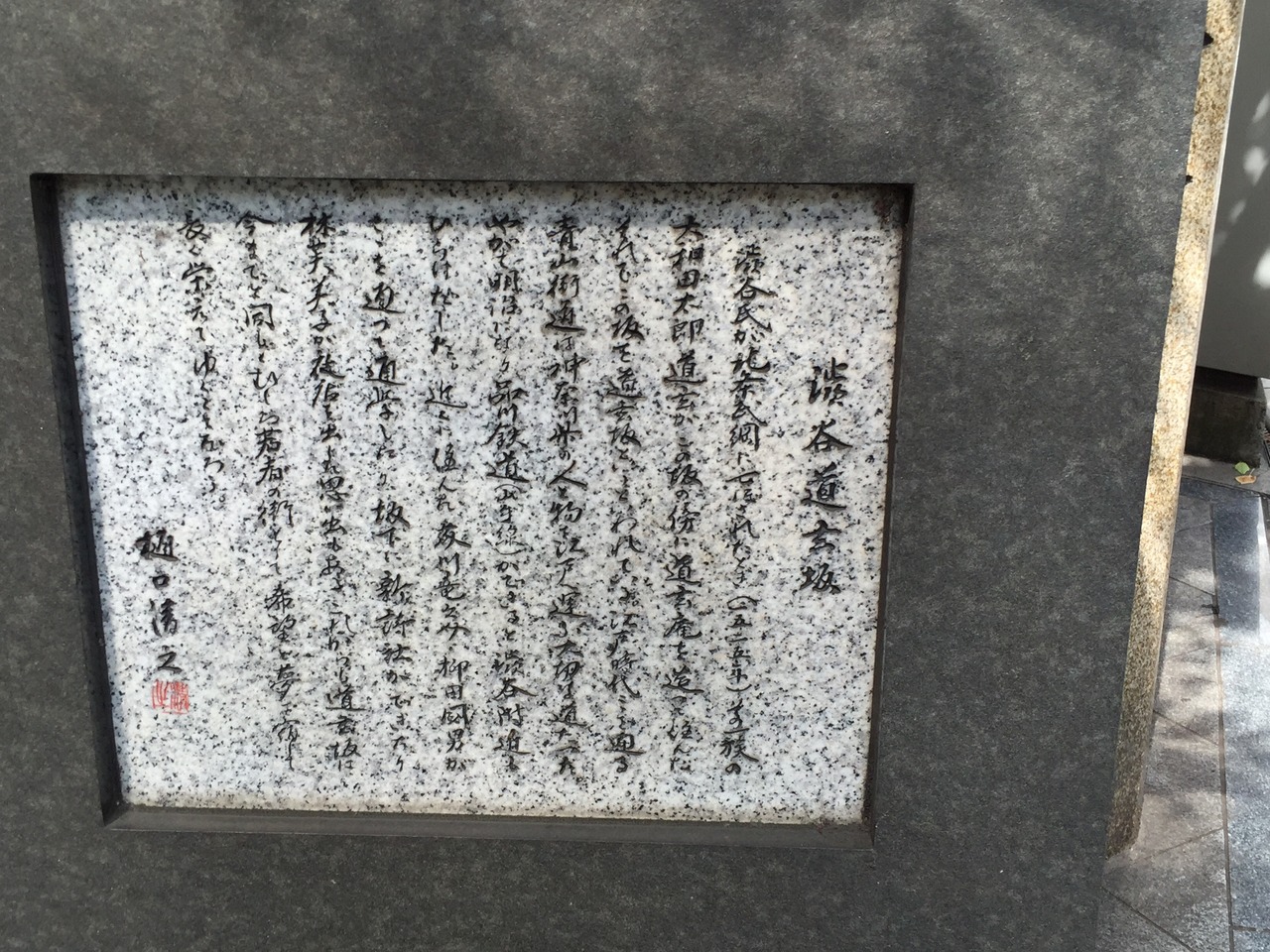 マークシティの西側の入り口付近に与謝野晶子の歌碑とともに置かれています。道玄坂の説明書が目の前にありますが、坂名の由来として記載されていることが、異なっており、少し迷います。こちらの碑では、限定的な書きぶりになっていました。