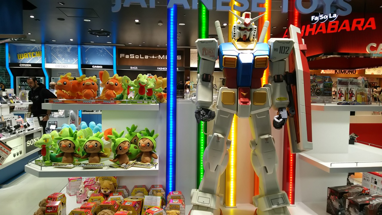 勿論免税店だ。ガンダムがお出迎えしてくれる。日本の和の良いものが取り揃えると言うコンセプトらしい。